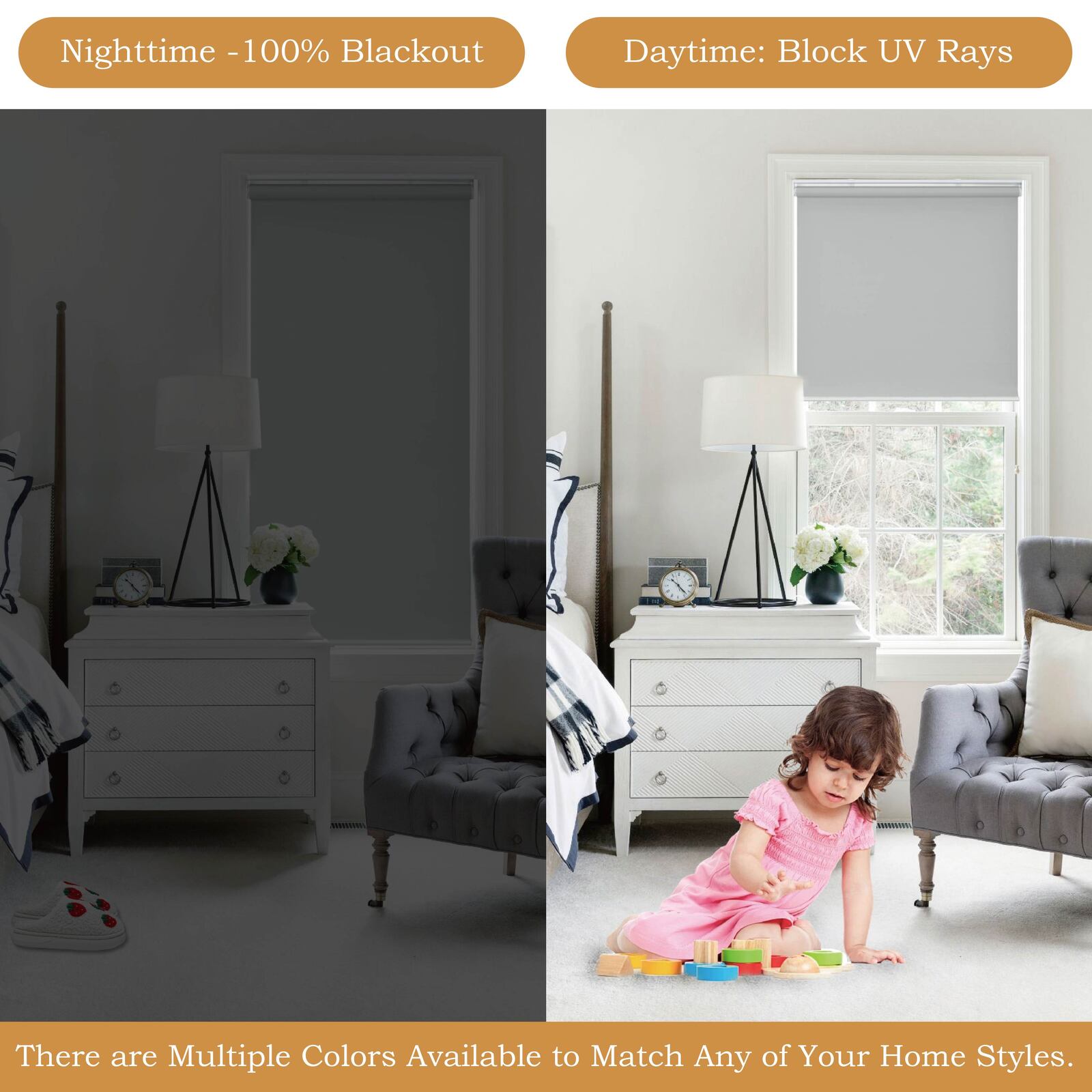 【Premium Blackout Material】Constructed with polyester fabric featuring a heat-blocking coating, delivering 100% light blockage and UV protection. The thermal backing keeping you warm in winter and cool in summer. The fabric is soft, smooth, and easy to clean