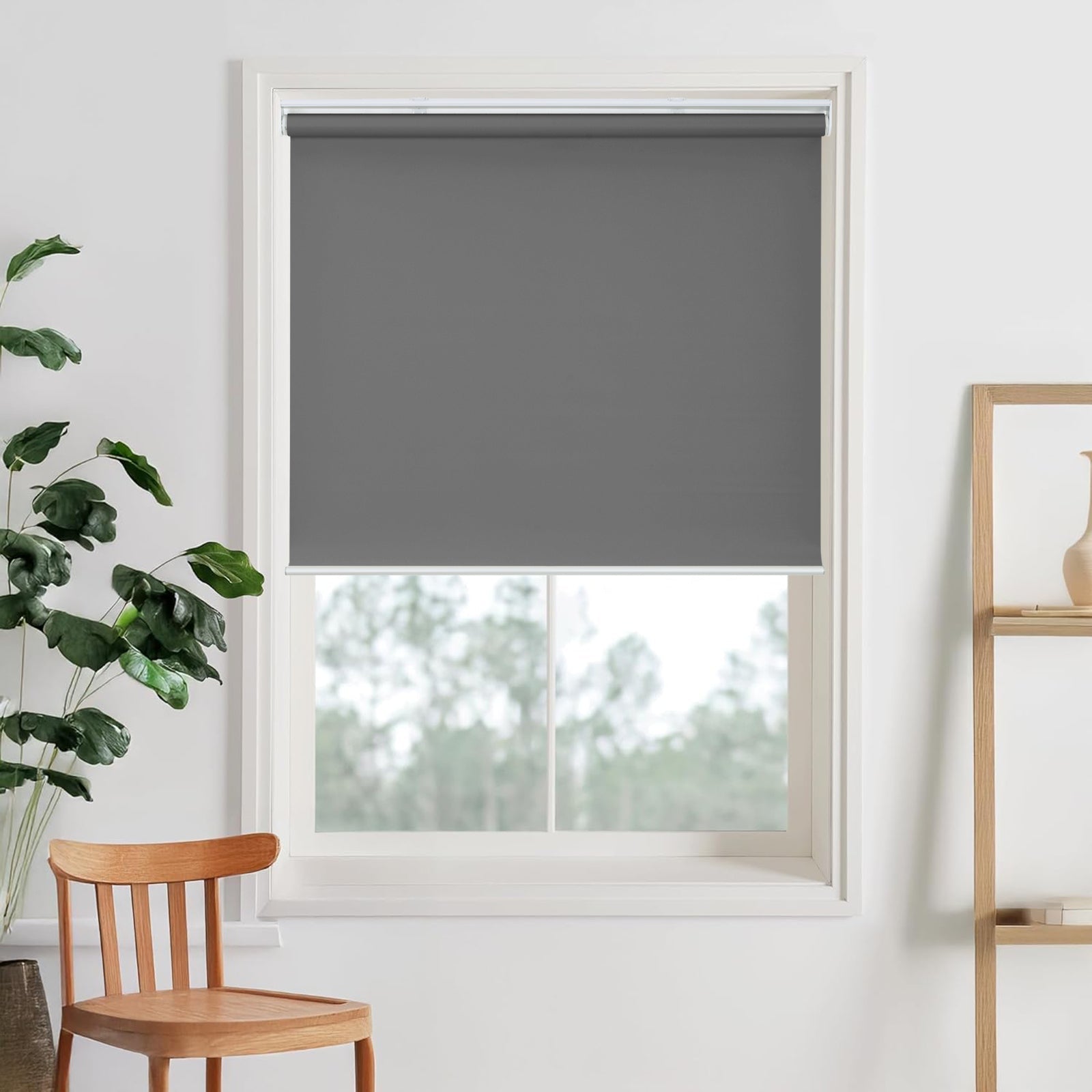 Cordless Roller Shades, 100% Blackout Window Blinds, UV Protection Heat Blocking, Custom, Pull Down Shades Window for Bedroom Living Room Kitchen Bathroom, Easy to Install
