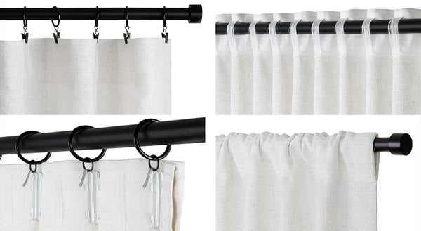 - Rod pocket, back tab, flat hook and hook belt, work for rod, track and traverse rod.